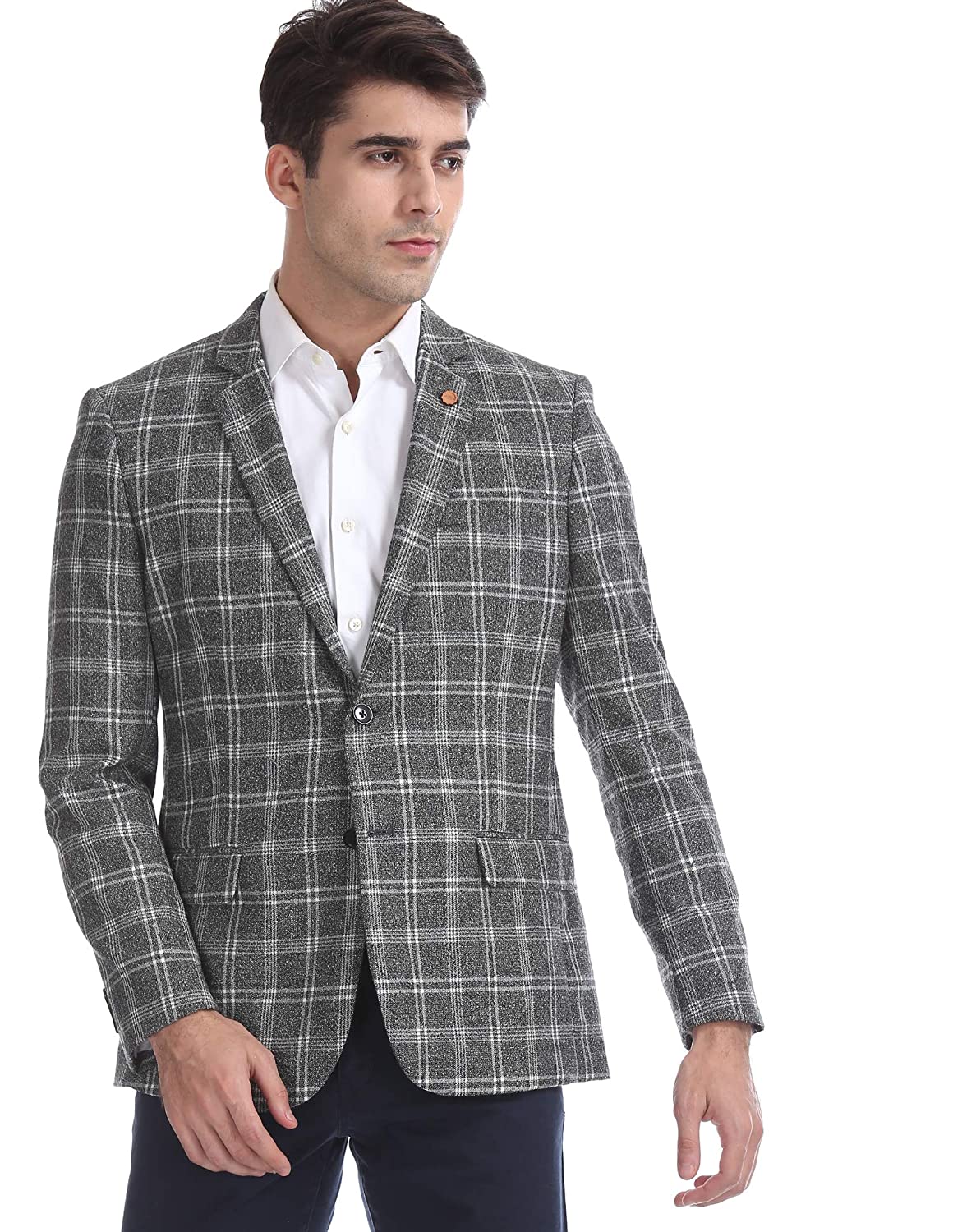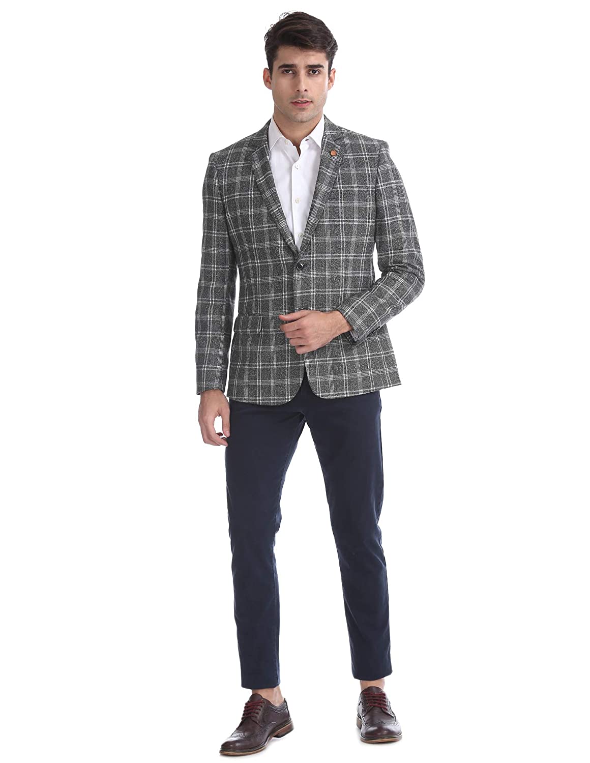 Arrow Grey Body Tailored Regular Fit Check Blazer