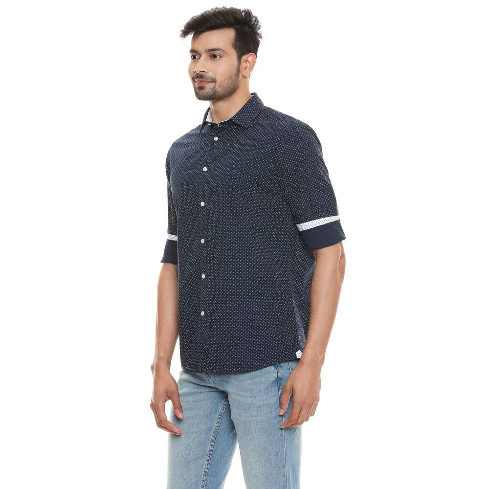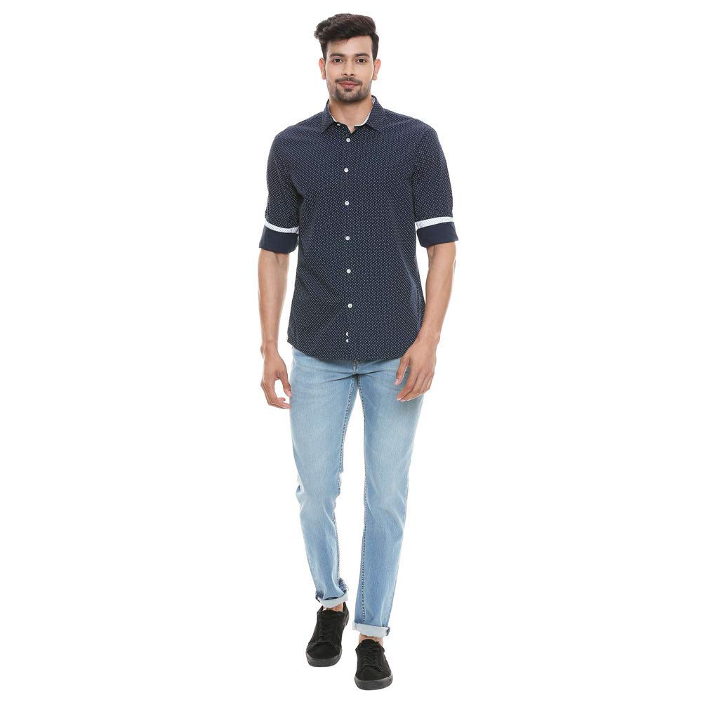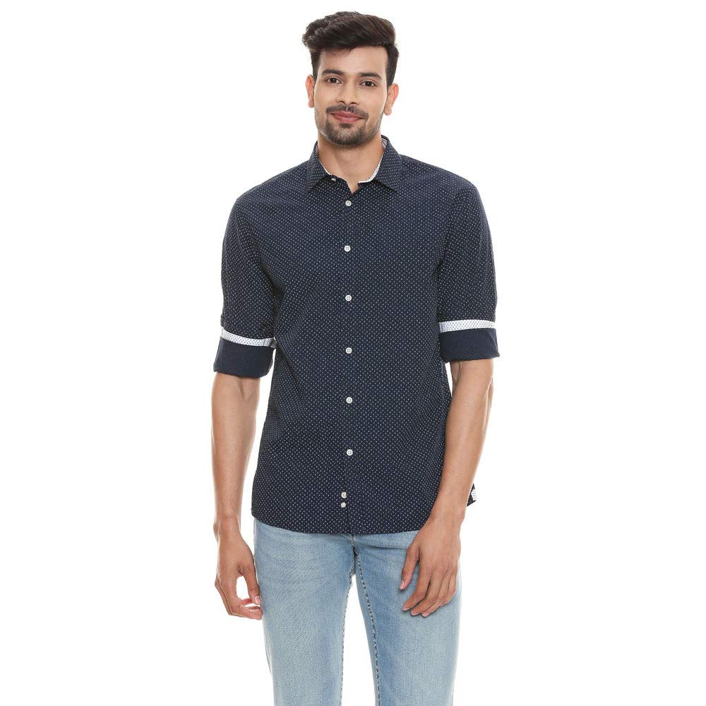 Channel smart looks in your casual wardrobe with this shirt from Celio. Hook up with comfort and roll with time as you adorn this shirt fashioned using cotton fabric. Besides, it features a collar, printed pattern and full sleeves giving it a bold structure.