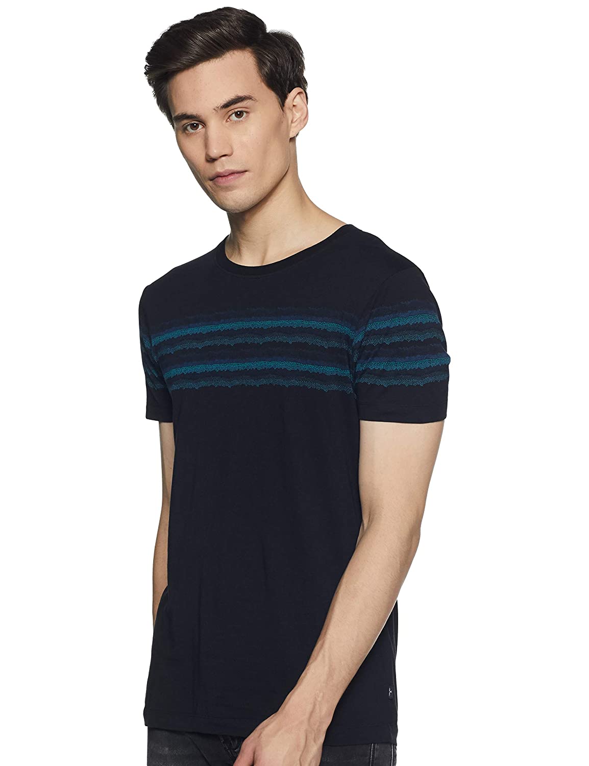 Flying Machine t-shirt will make a sound addition to your topwear portfolio. The breathable cotton construction keeps you at ease for hours. Wear yours with linen shorts and loafers.