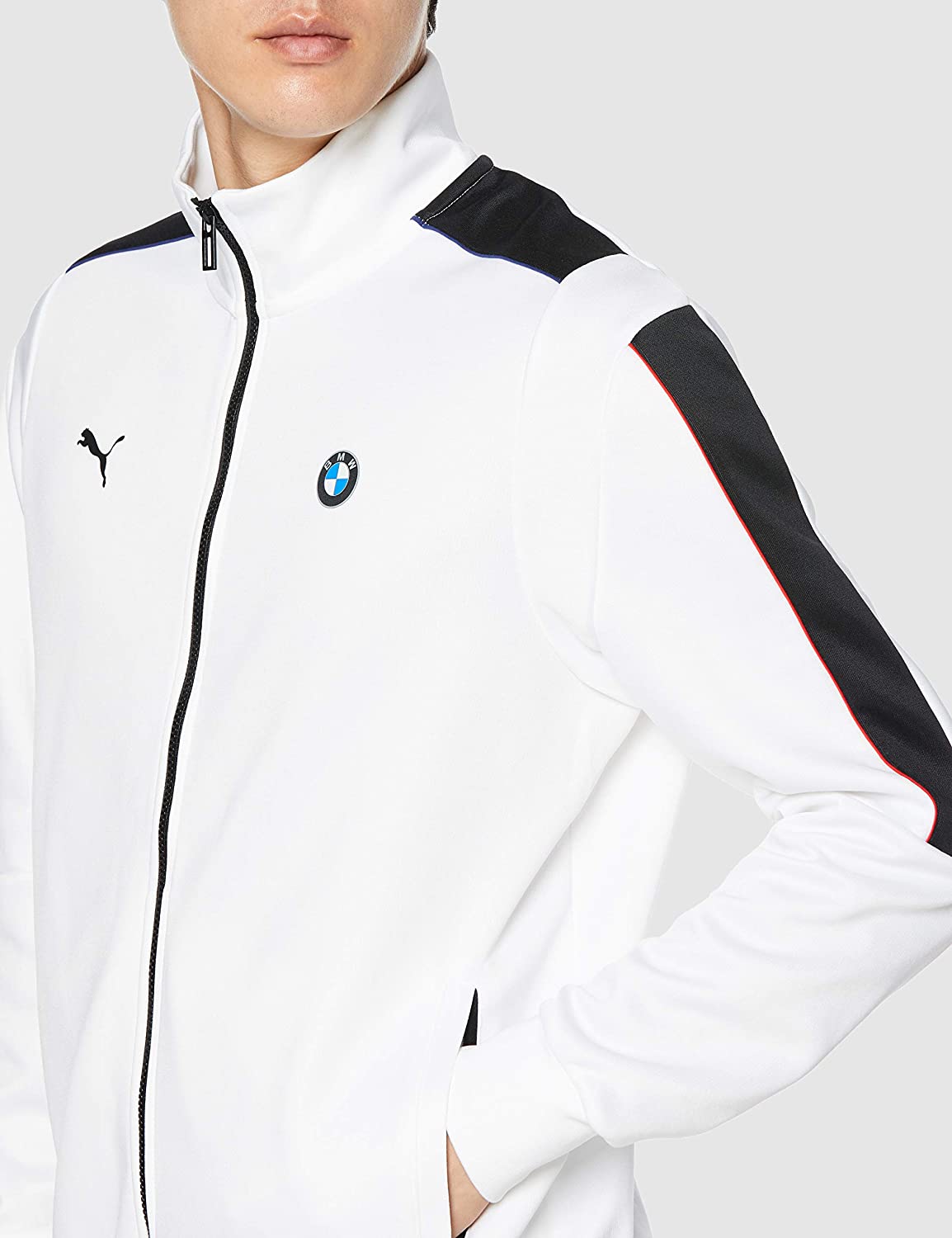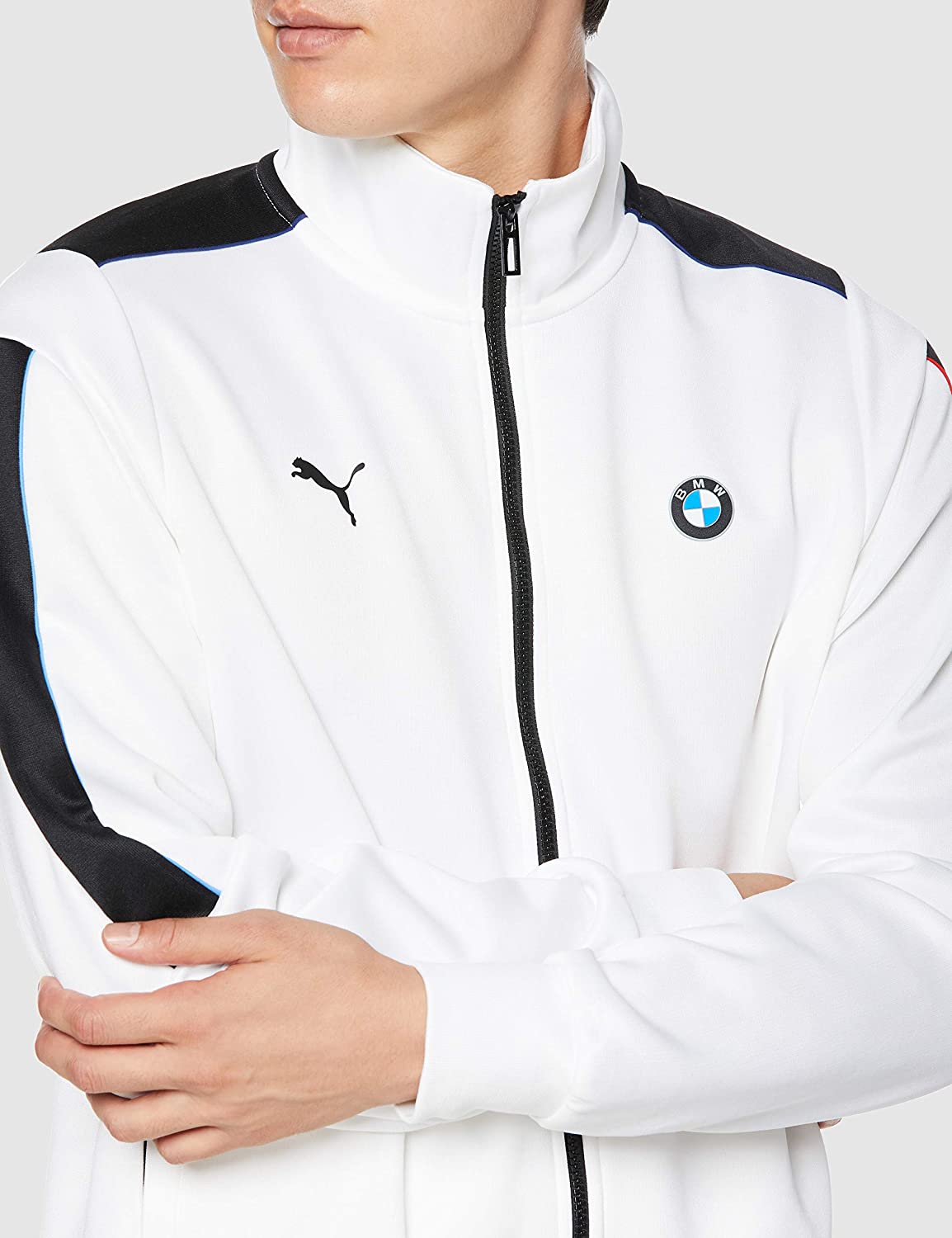 “-The BMW M Motorsport T7 Track Jacket takes inspiration from PUMA’s iconic T7 Jacket. The PUMA T7 Jacket hit the scene 50 years ago and has been changing the game ever since – from the streets to the stage to the track. This BMW M Motorsport reissue will have you bringing the classics back with motorsport style. The Track Jacket combines design features from the original heritage style, paired with racesuit inspired elements to transform the style for Motorsport. It features a contrasted T7 panel, highlighted with ///M colour piping and racing shoulder panels. A must-have for PUMA and BMW M Motorsport fans! – Regular fit with slightly dropped shoulders and racing inspired sleeve panel – ///M Colours pipings on the sleeves and shoulders to emphasize contrasted T7 stripe inserts – Elevated double knit Track fabric with wicking finish – Side zip pockets for secure storage solutions. – Articulated sleeves for freedom of movement – Rib cuffs and hem – BMW Propeller woven/raised print badge on left chest – Cat Logo print on right chest – //M Motorsport wording on center back – BMW M Motorsport inner woven label”