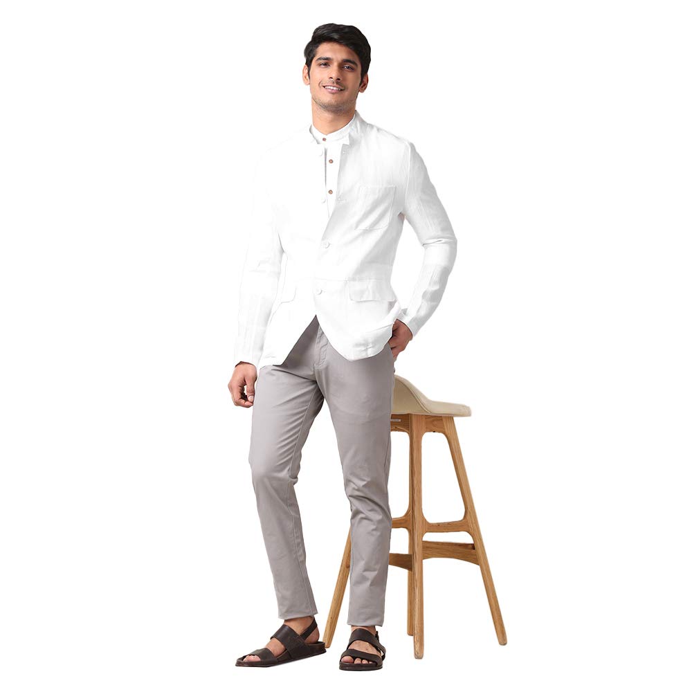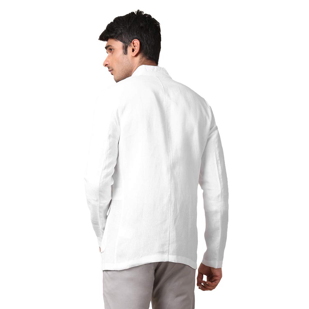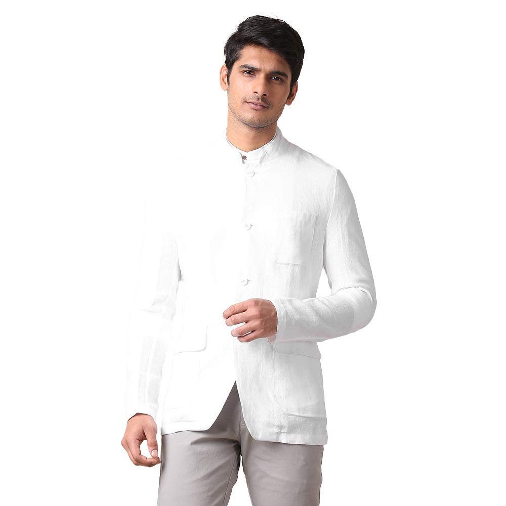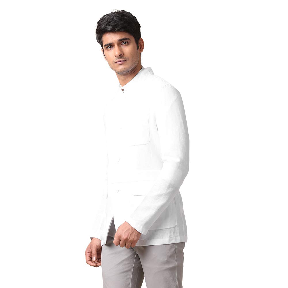 Mandarin collar, four button placket, three pockets, slim fit, the model is 6ft1in tall and is wearing a size L,,,.